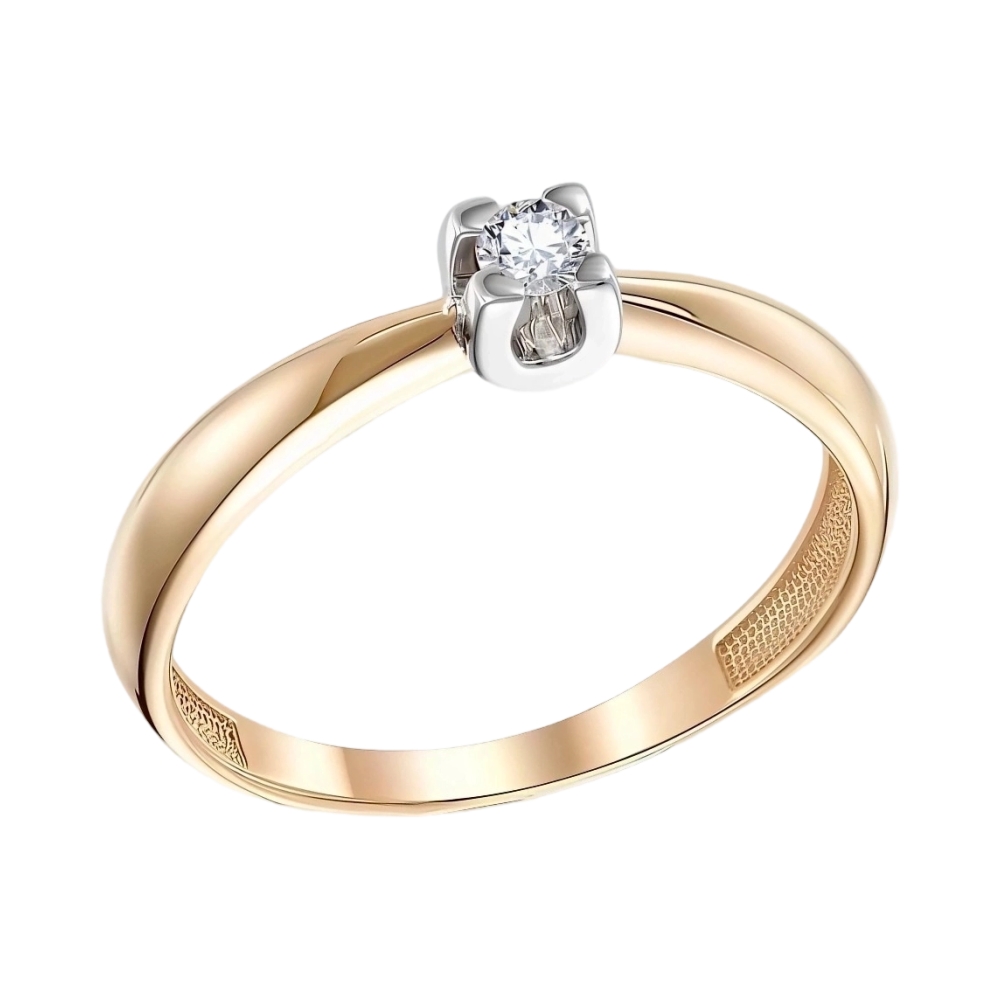 Кольцо помолвочное из красного золота с бриллиантом