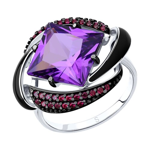 [NAME] => Кольцо из серебра с эмалью с сиреневым ситаллом и красными фианитами