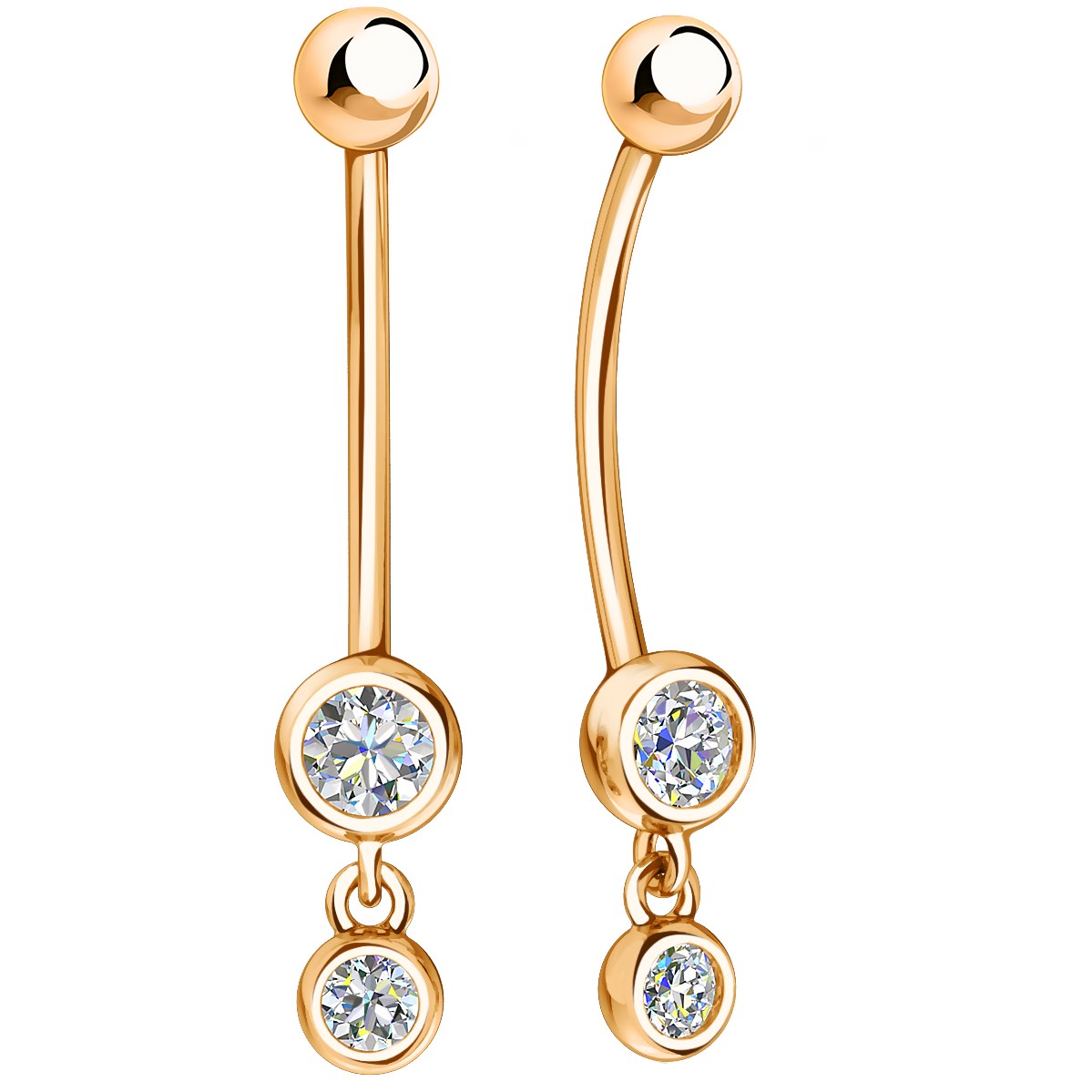Пирсинг из красного золота с фианитами