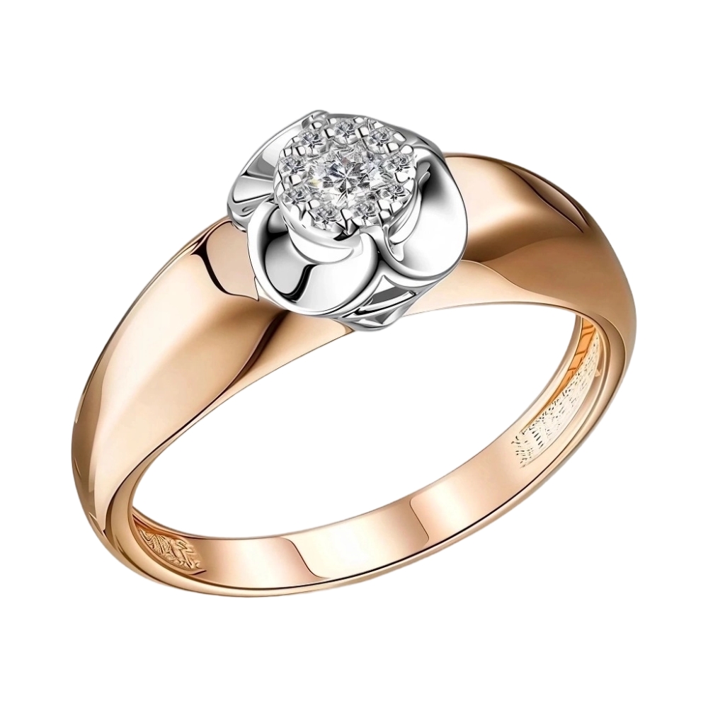 Кольцо помолвочное из комбинированного золота с бриллиантами