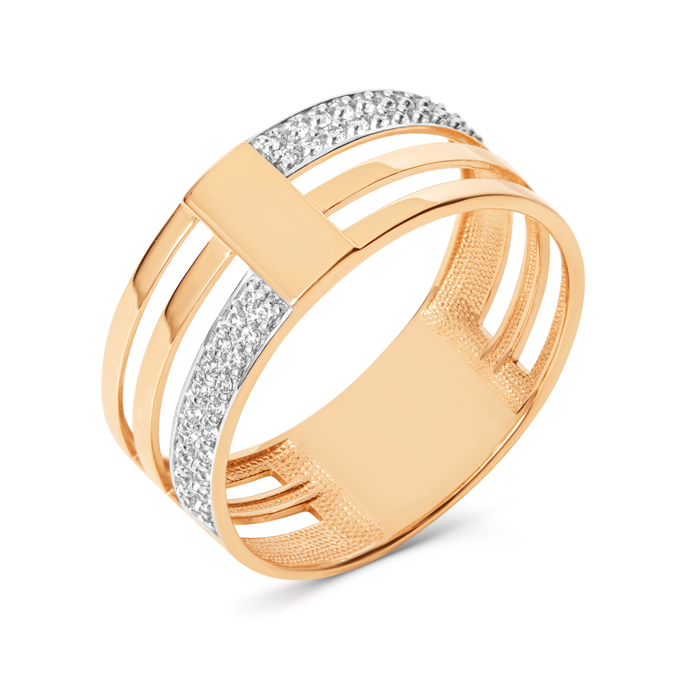Кольцо из красного золота с фианитами 028026