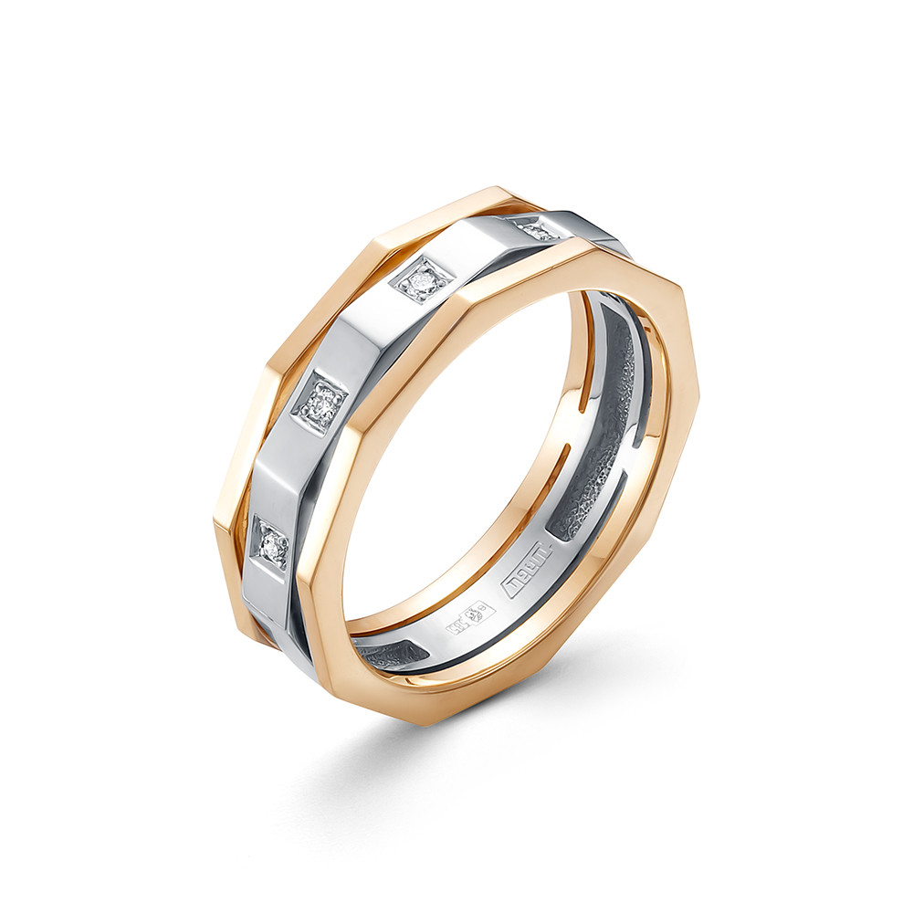 Обручальное кольцо из комбинированного золота с бриллиантами 028100