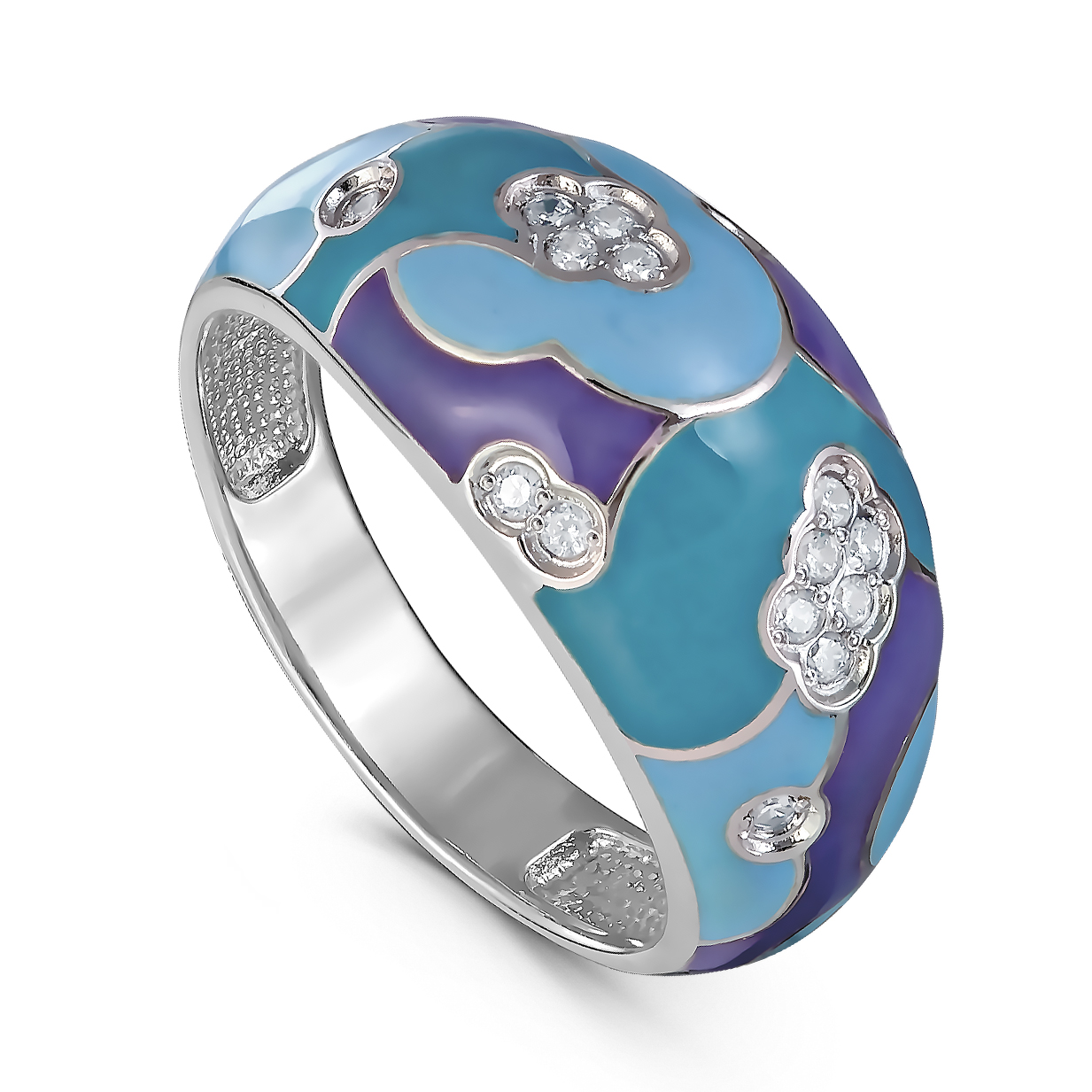 Кольцо из серебра с фианитами и эмалью