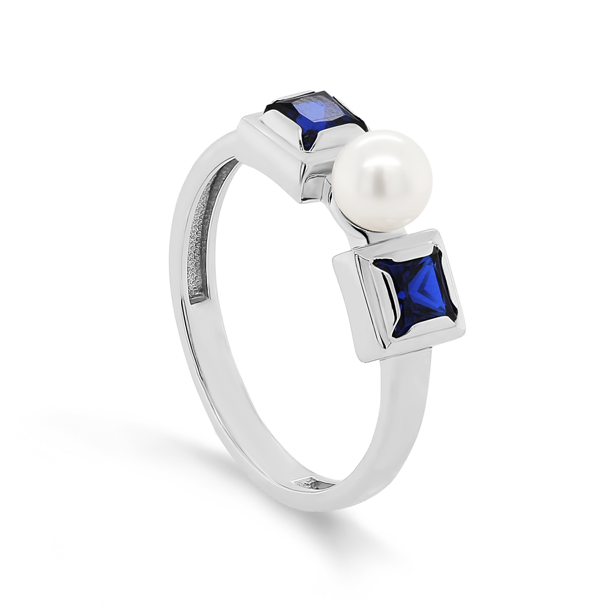 Кольцо из серебра с жемчугом имитац. и фианитами