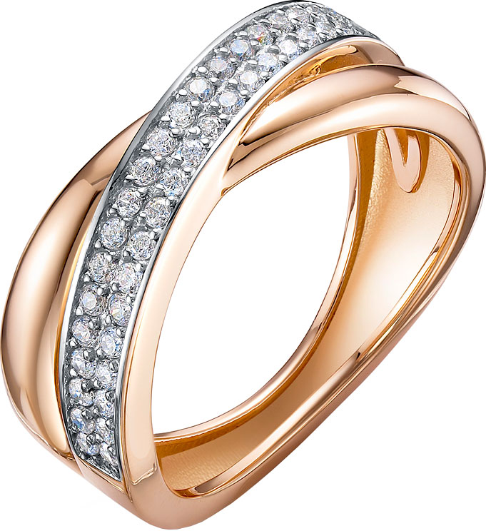 Кольцо из красного золота с фианитами 028774