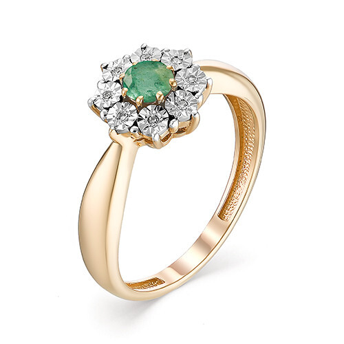Кольцо из красного золота с изумрудом и бриллиантами 029104