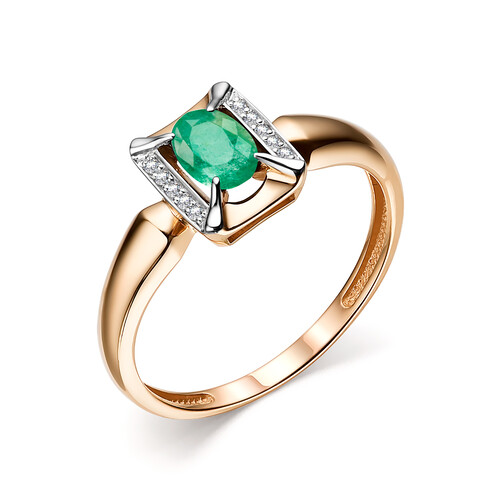 Кольцо из красного золота с изумрудом и бриллиантами 029109