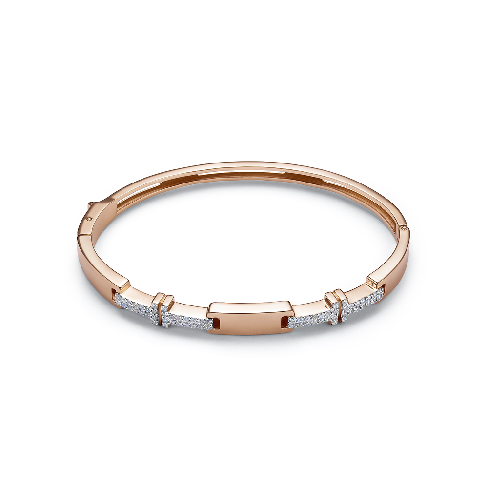 Браслет жёсткий из красного золота с фианитами