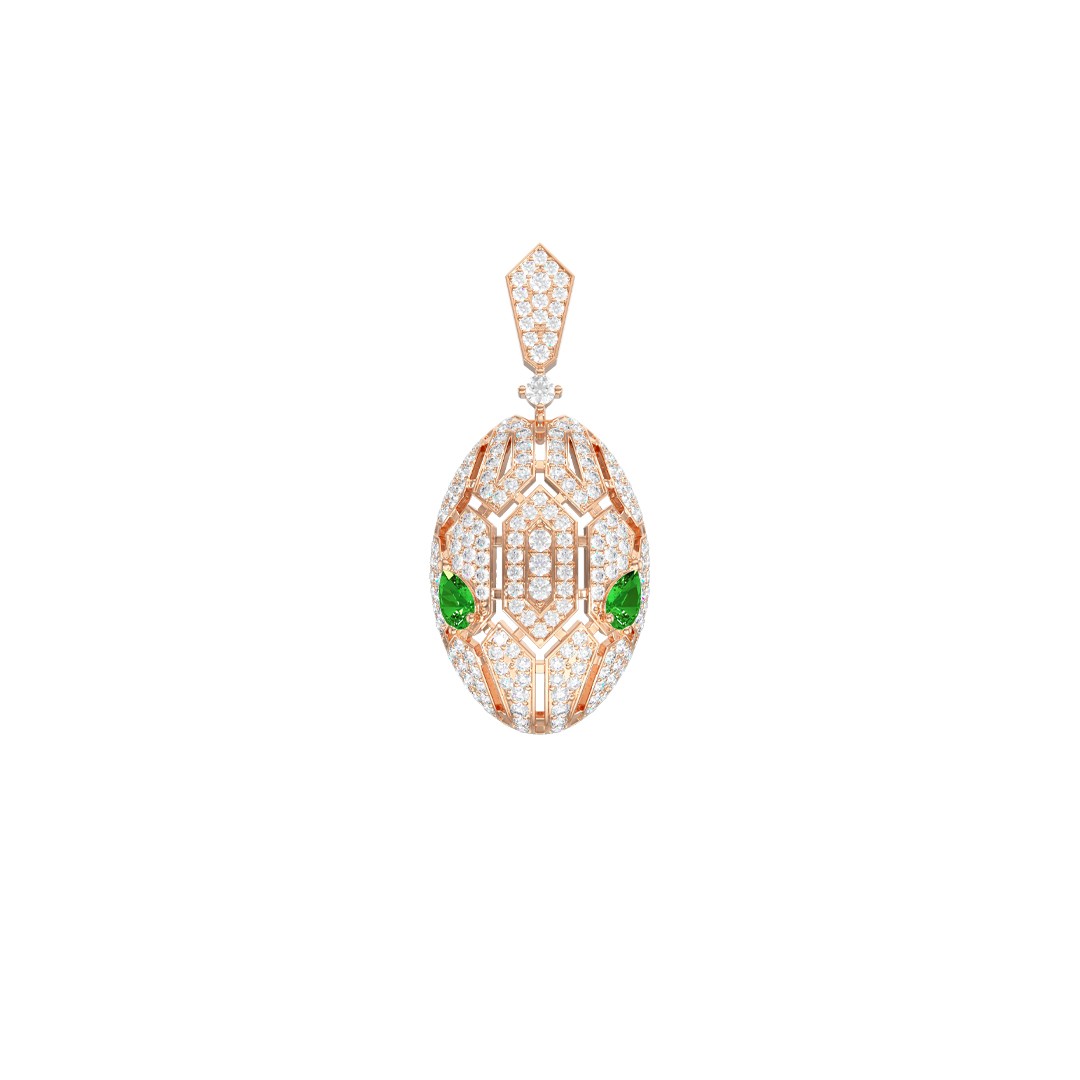 Подвеска из красного золота с нано изумрудом и фианитами 029383