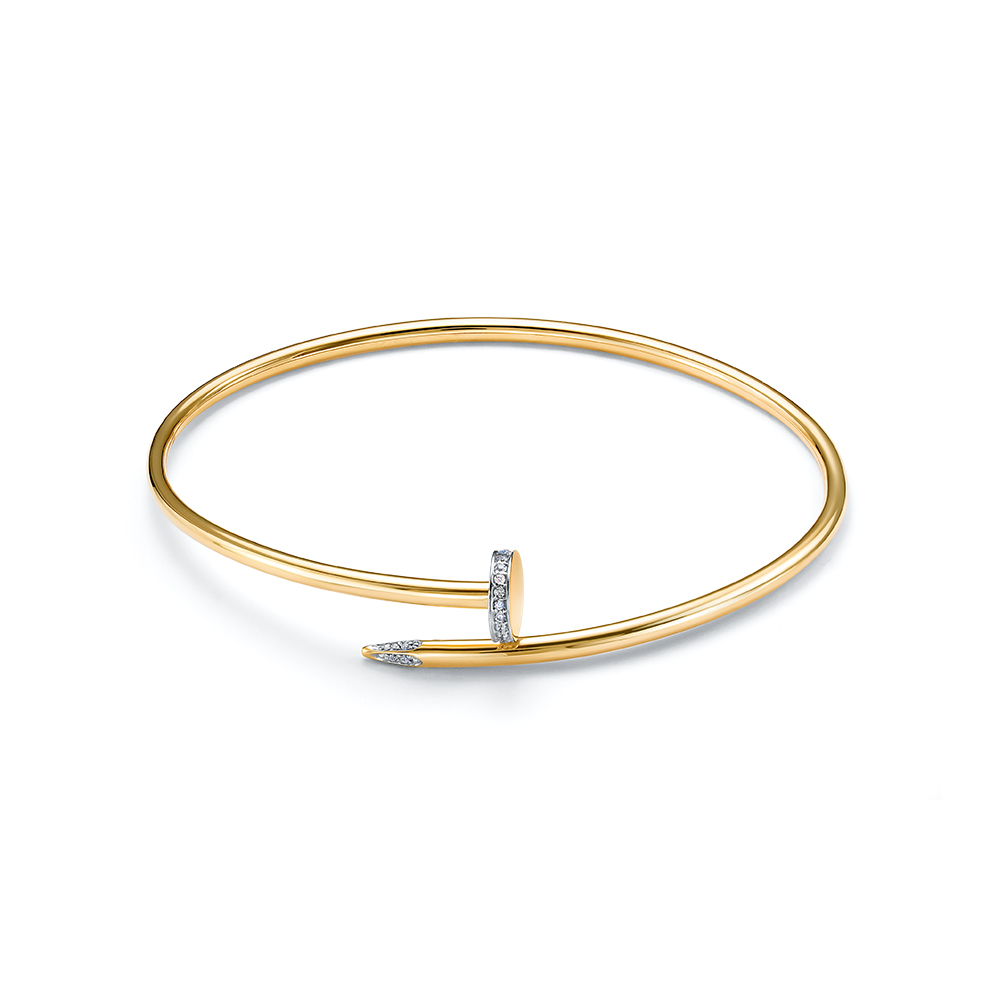 Браслет жёсткий из жёлтого золота с фианитами
