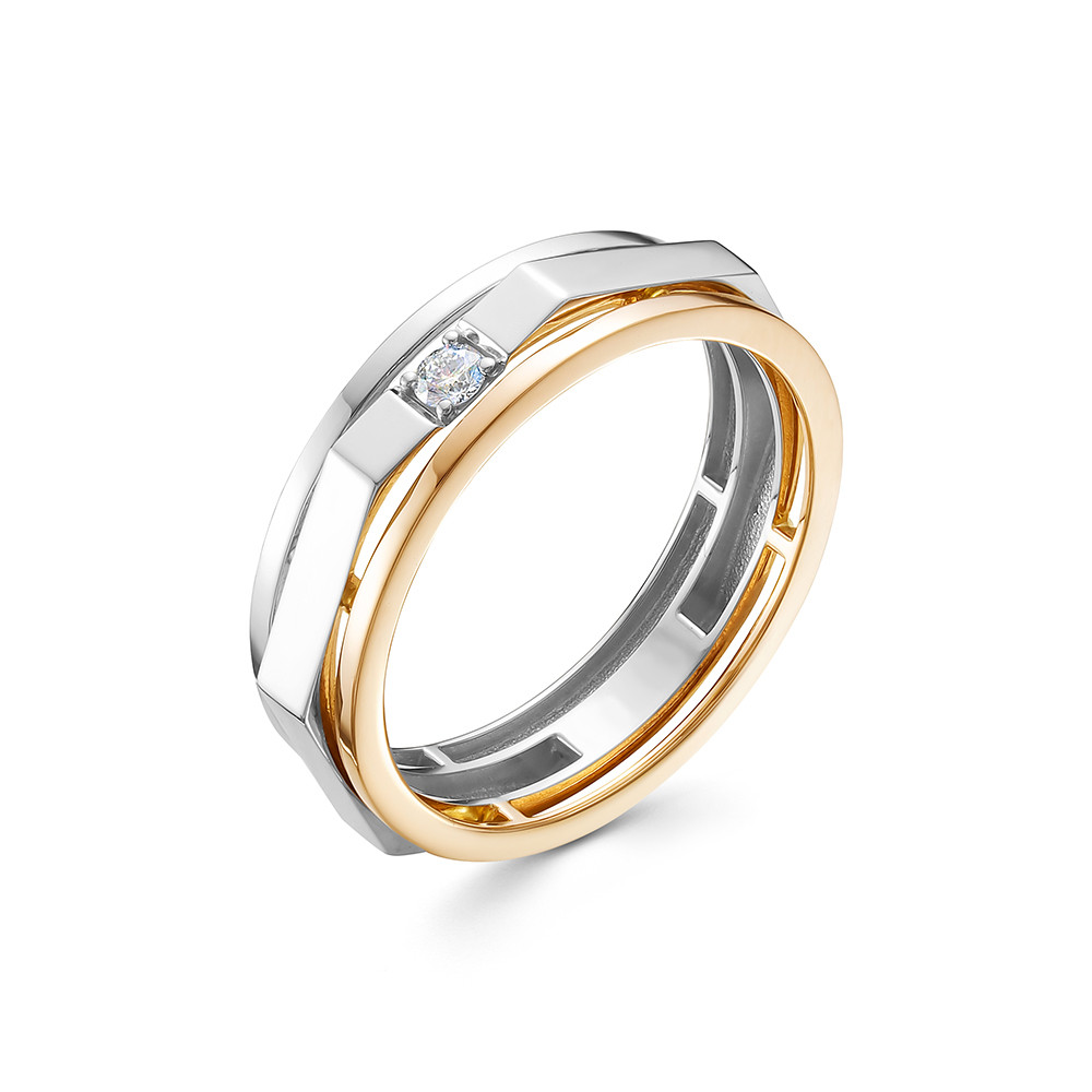 Обручальное кольцо из комбинированного золота с бриллиантом 030229