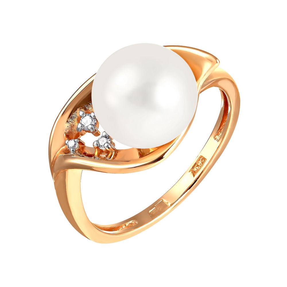 Кольцо из красного золота с жемчугом и фианитами 030520