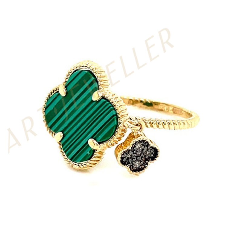Кольцо из жёлтого золота с коньячными бриллиантами и керамикой 031436