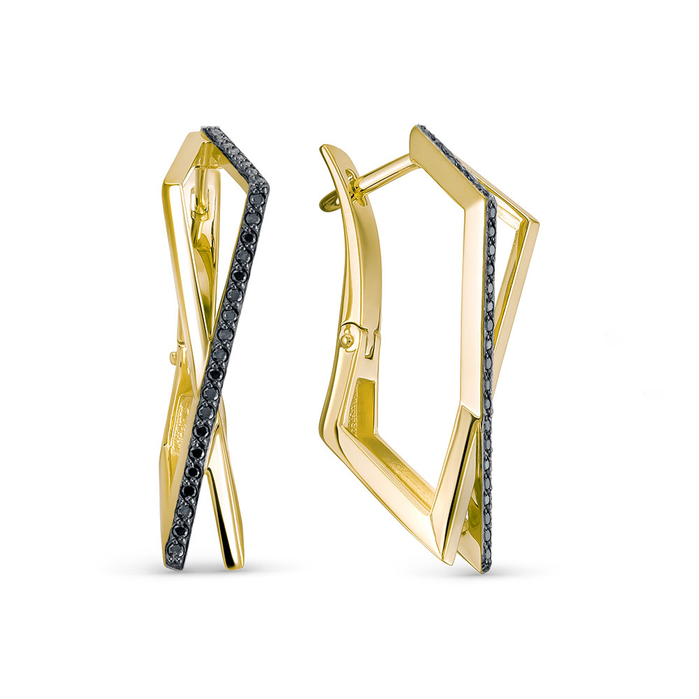 Серьги из жёлтого золота с чёрными бриллиантами 031688