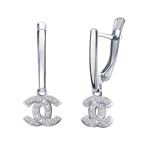 Серьги из белого золота с фианитами