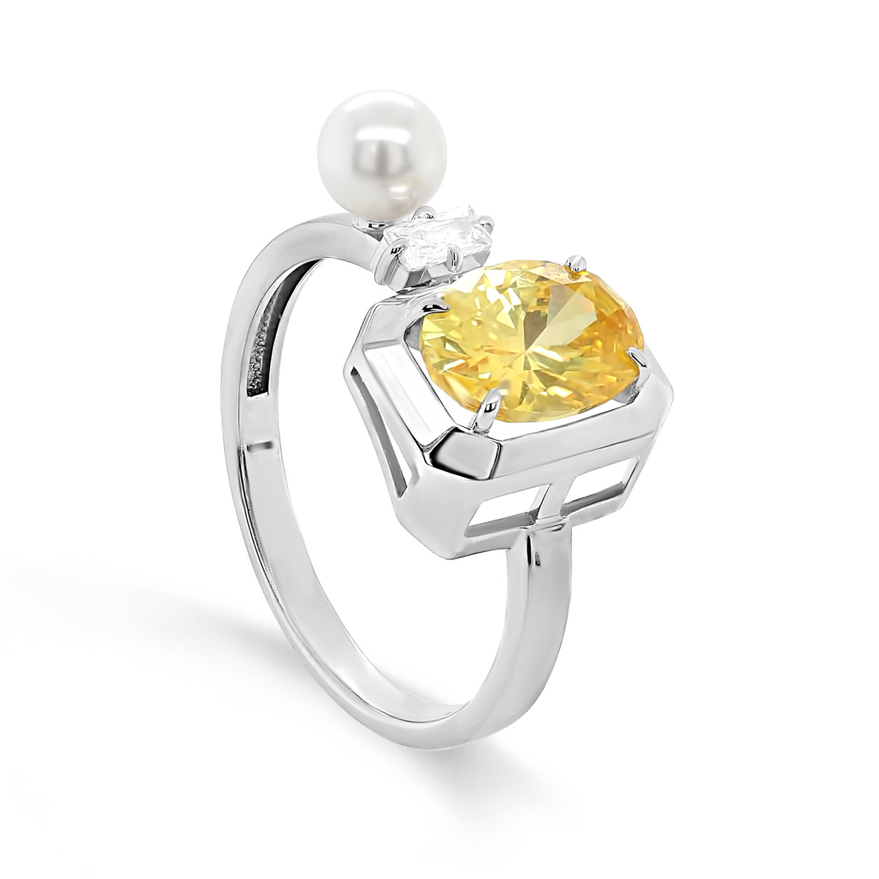 [NAME] => Кольцо из серебра с жемчугом и фианитами