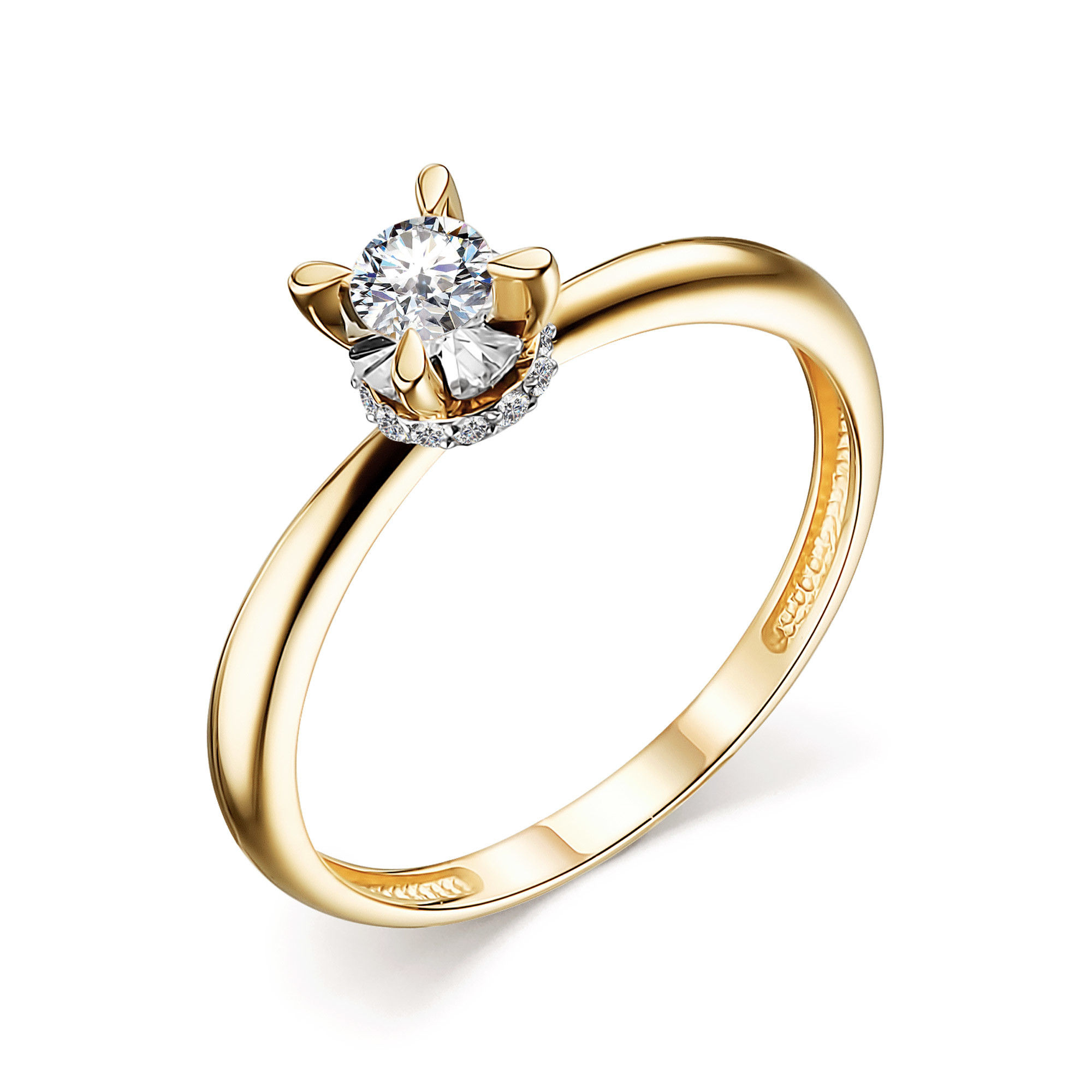 Кольцо помолвочное из жёлтого золота с бриллиантами