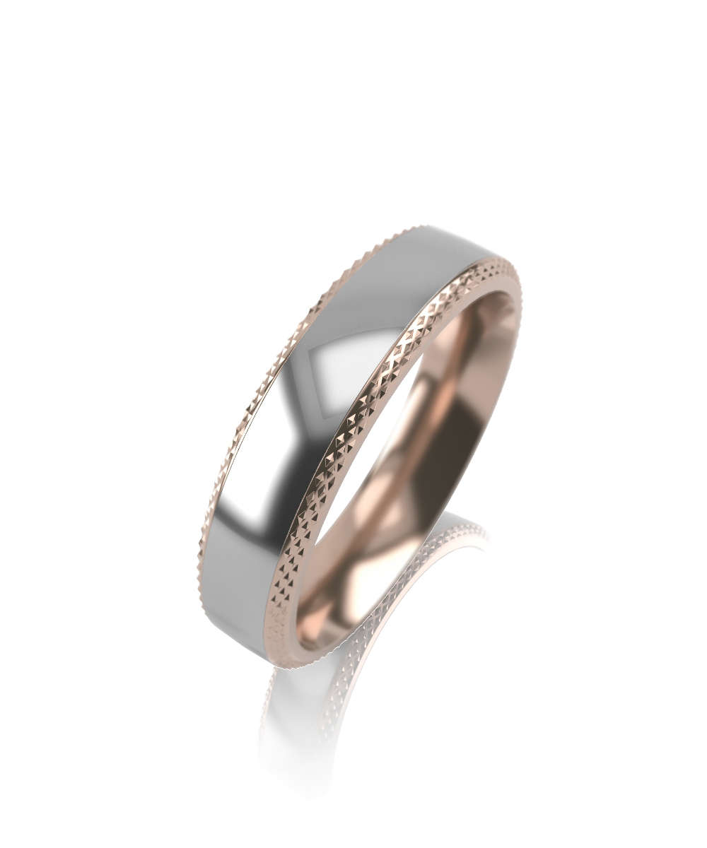 Классическое обручальное кольцо из двух цветов золота 585 пробы, края которого обработаны в технике "алмазная грань".