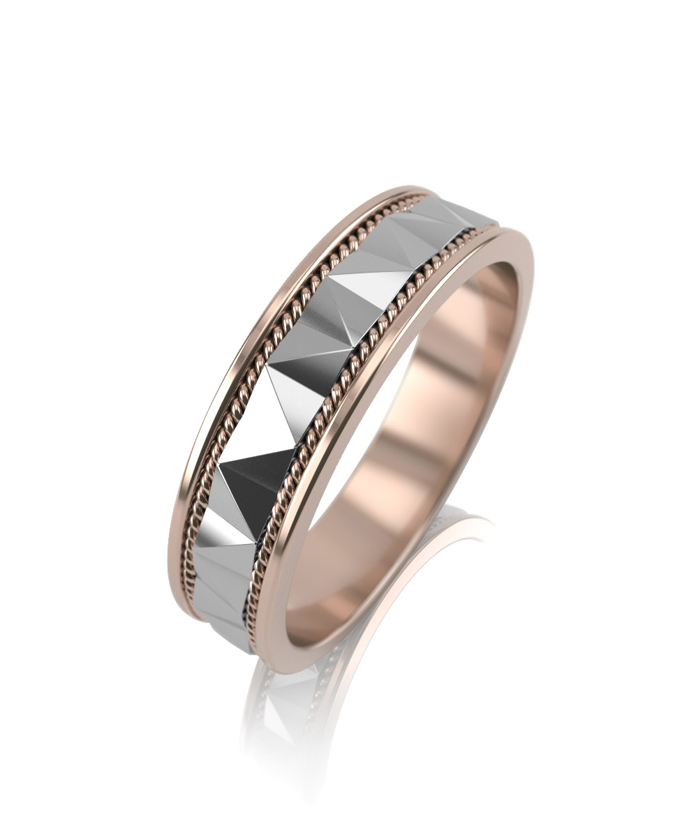 Основание кольца выполнено из красного золота, а середина из белого золота.