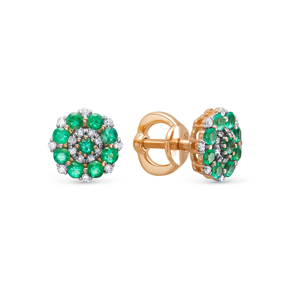 Серьги из красного золота с изумрудами и бриллиантами 034279