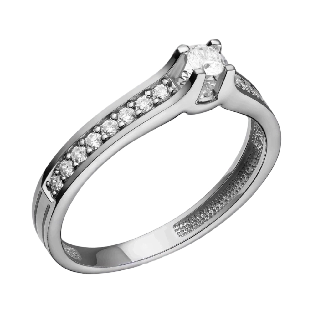 Кольцо помолвочное из белого золота с бриллиантами 034406