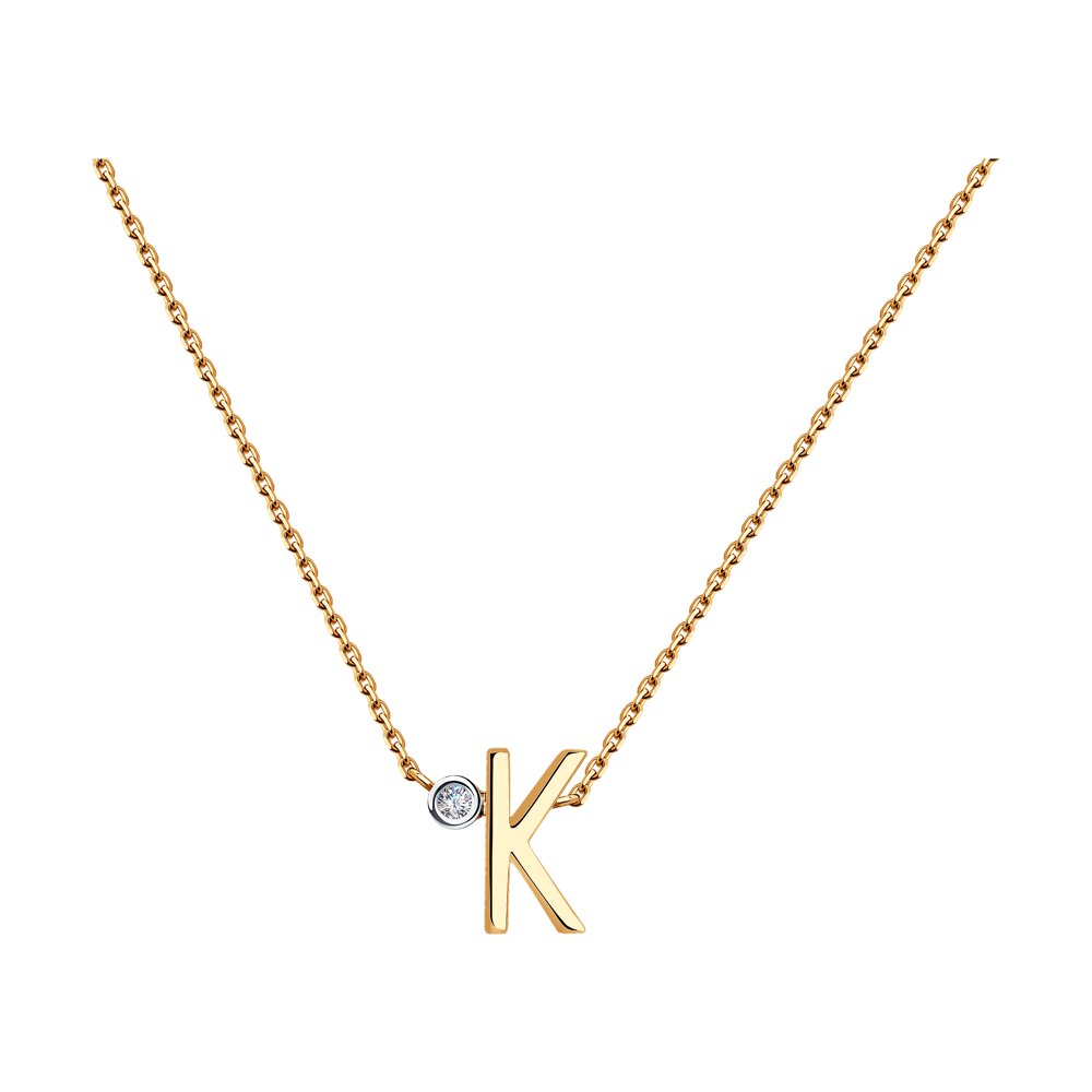 Колье из золота с искусственно выращенным бриллиантом 034429