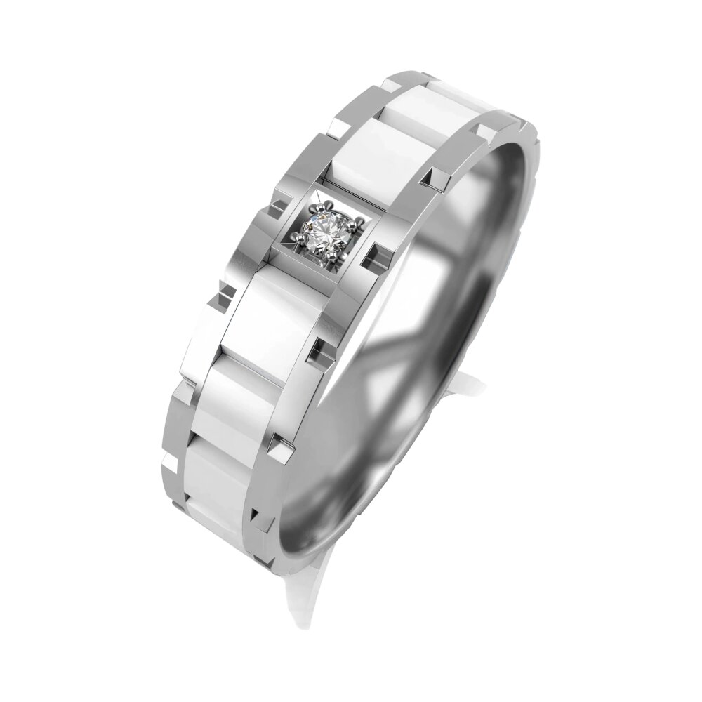 Обручальное кольцо из белого золота с бриллиантом 034568