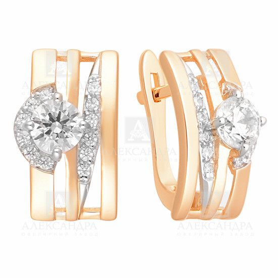 Серьги из жёлтого золота с фианитами 034570