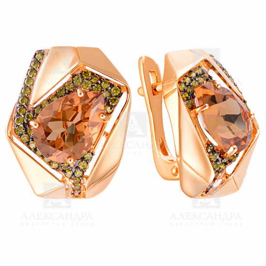 Серьги из красного золота с цитринами и фианитами 034578