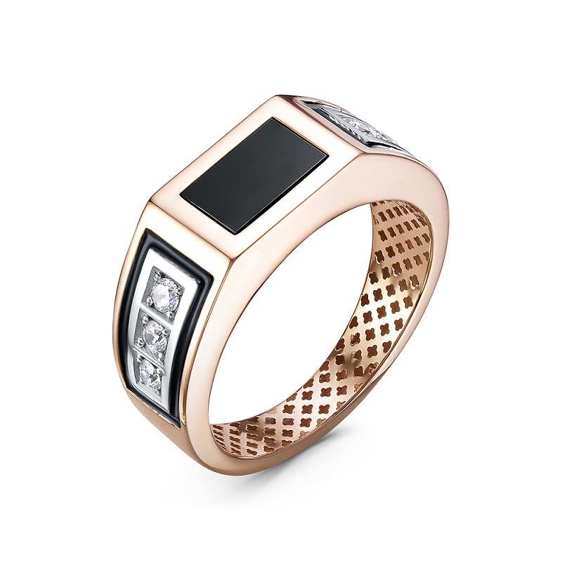 Кольцо мужское в красном золоте с ониксом и фианитами 034912