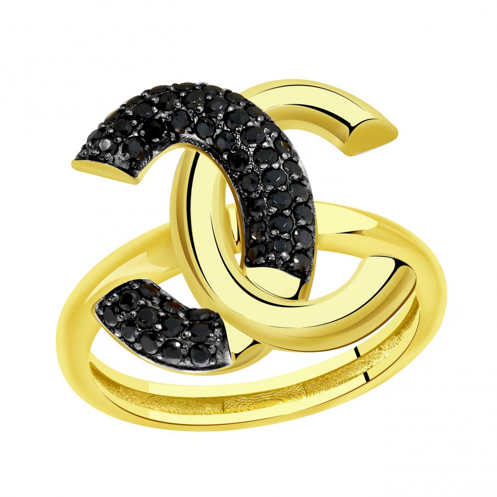 Кольцо из жёлтого золота с фианитами 034987