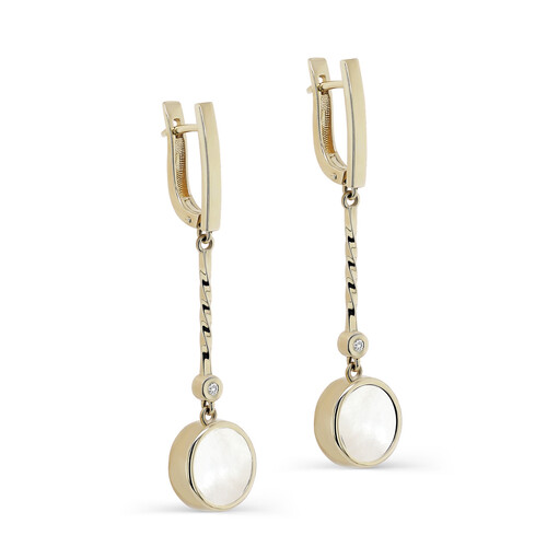Серьги из жёлтого золота с бриллиантами и перламутром 036315