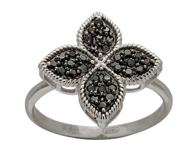 Кольцо из белого золота с чёрными бриллиантами 038011