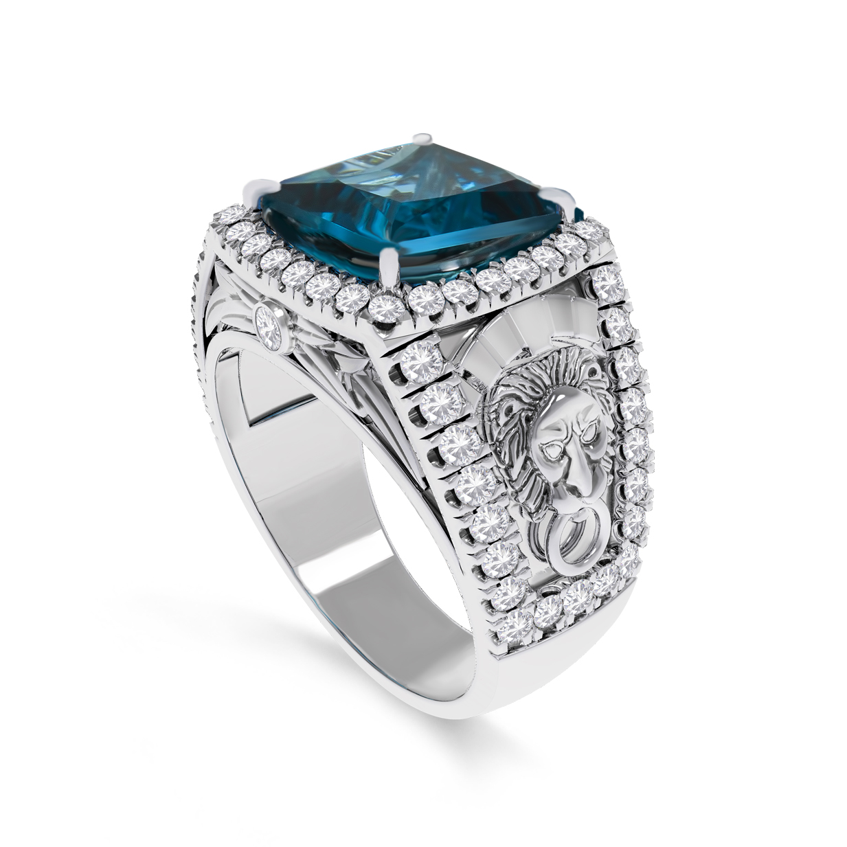 Мужская печатка из белого золота с бриллиантами и топазом 039078