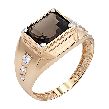 Печатка мужская из красного золота с раух-топазом и фианитом 040695