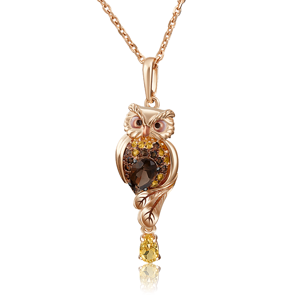 Подвеска из красного золота с дымчатым кварцем и цитрином