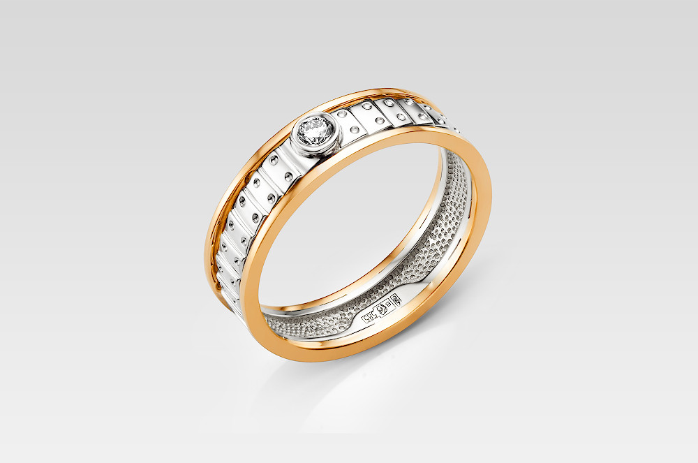 Обручальное кольцо из комбинированного золота с бриллиантом