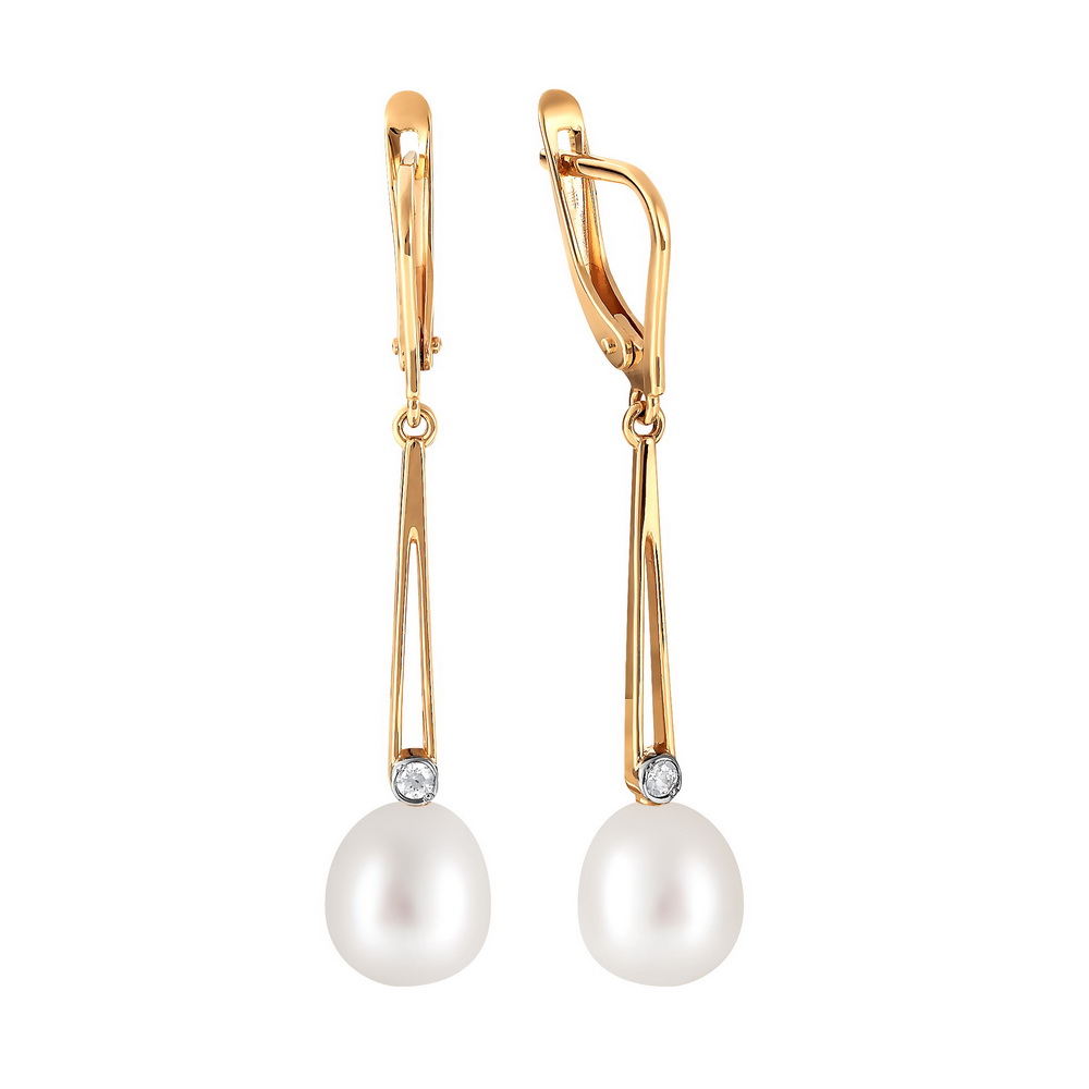 Серьги из красного золота с жемчугом и фианитами 044865