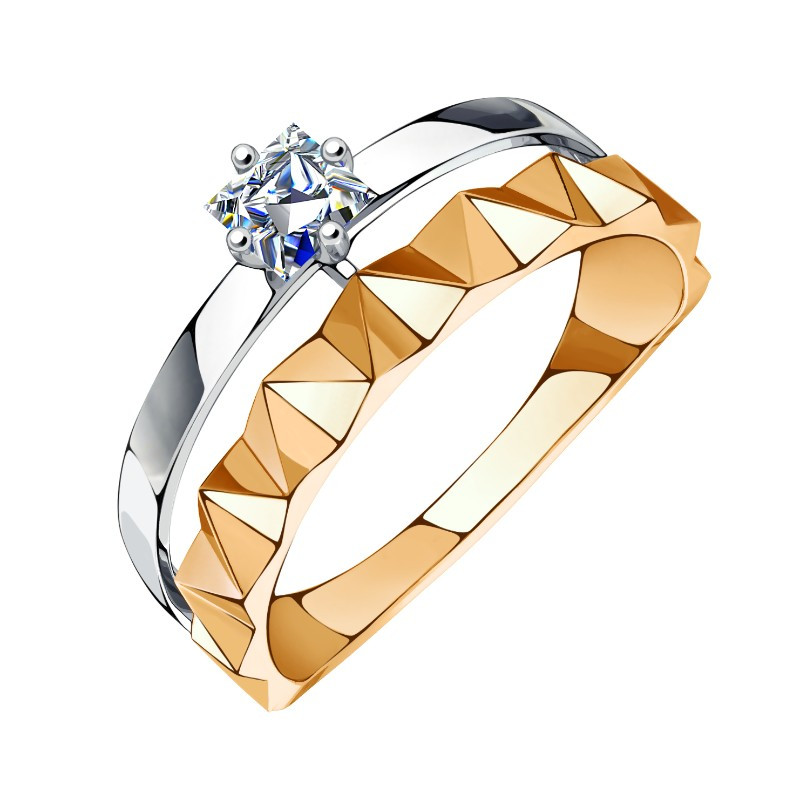 Кольцо из комбинированного золота с фианитами