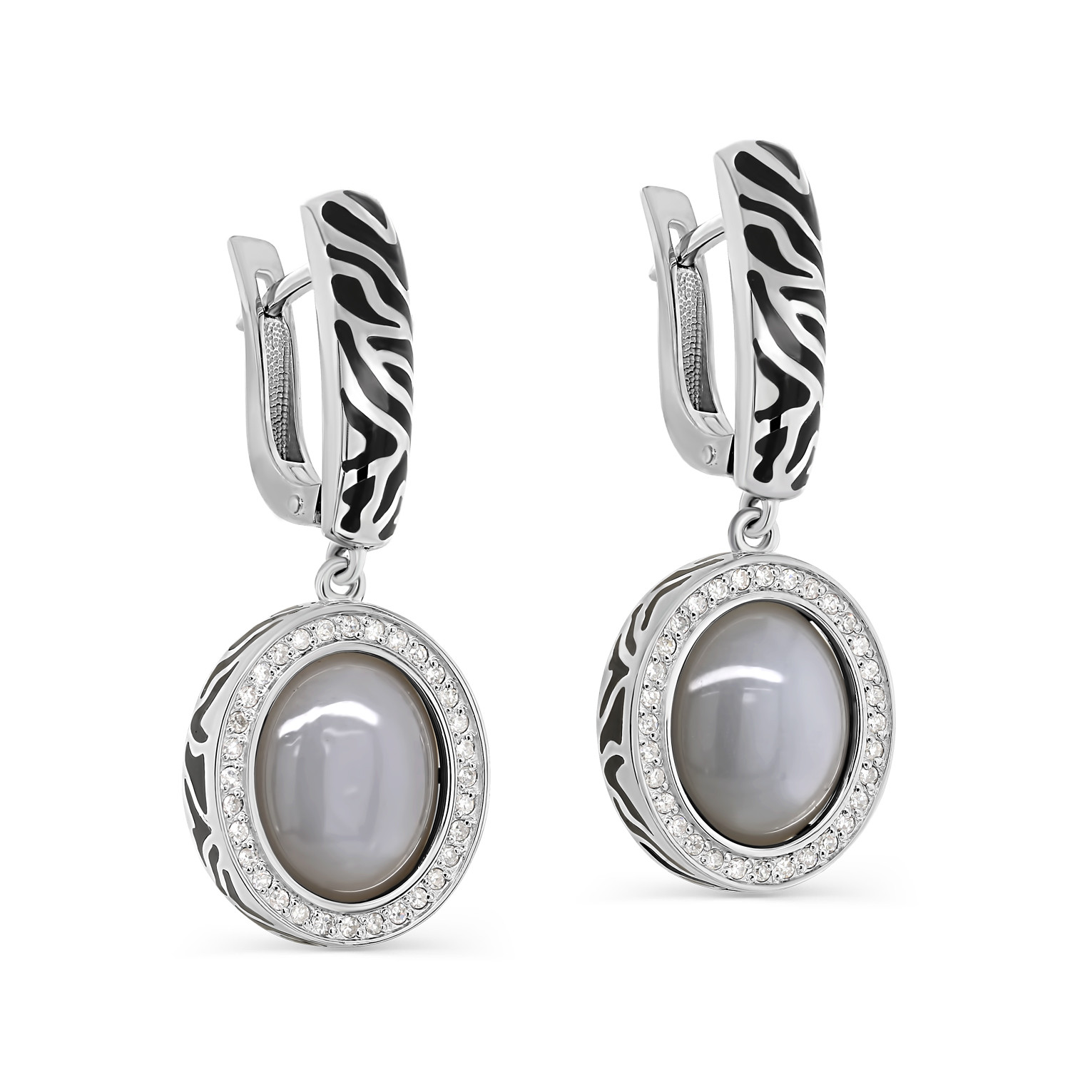 Серьги из белого золота с лунным камнем и бриллиантами