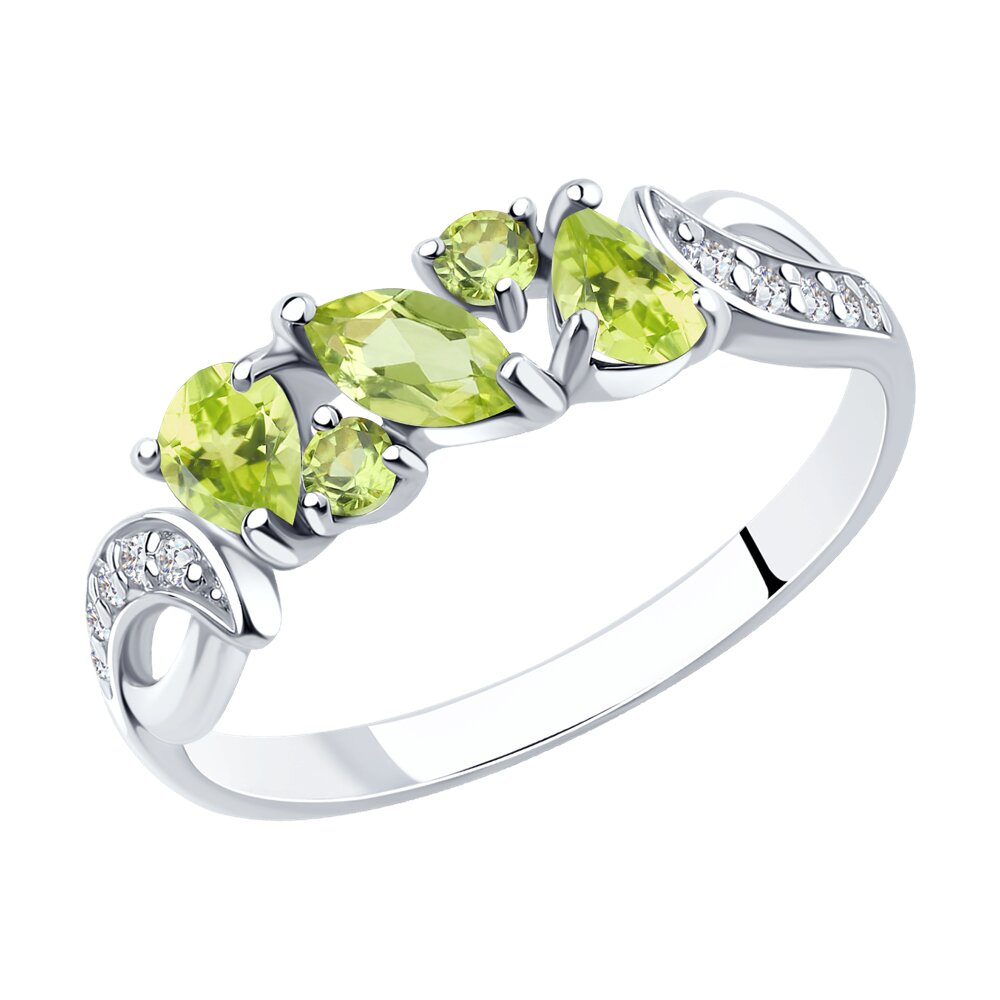 Кольцо из серебра с хризалитами и фианитами