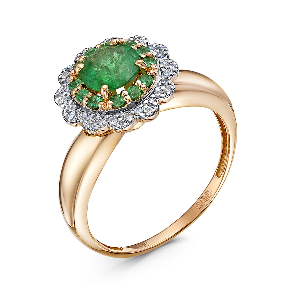 Кольцо из красного золота с изумрудом и бриллиантами 051242