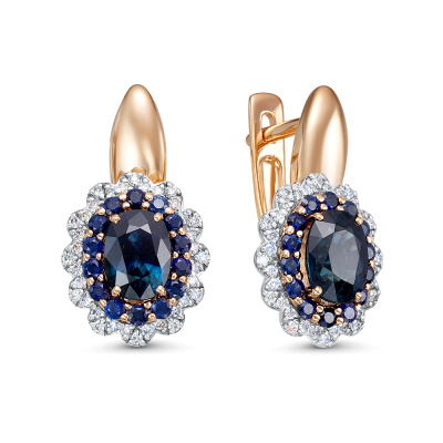 Серьги из красного золота с сапфирами и бриллиантами 051247