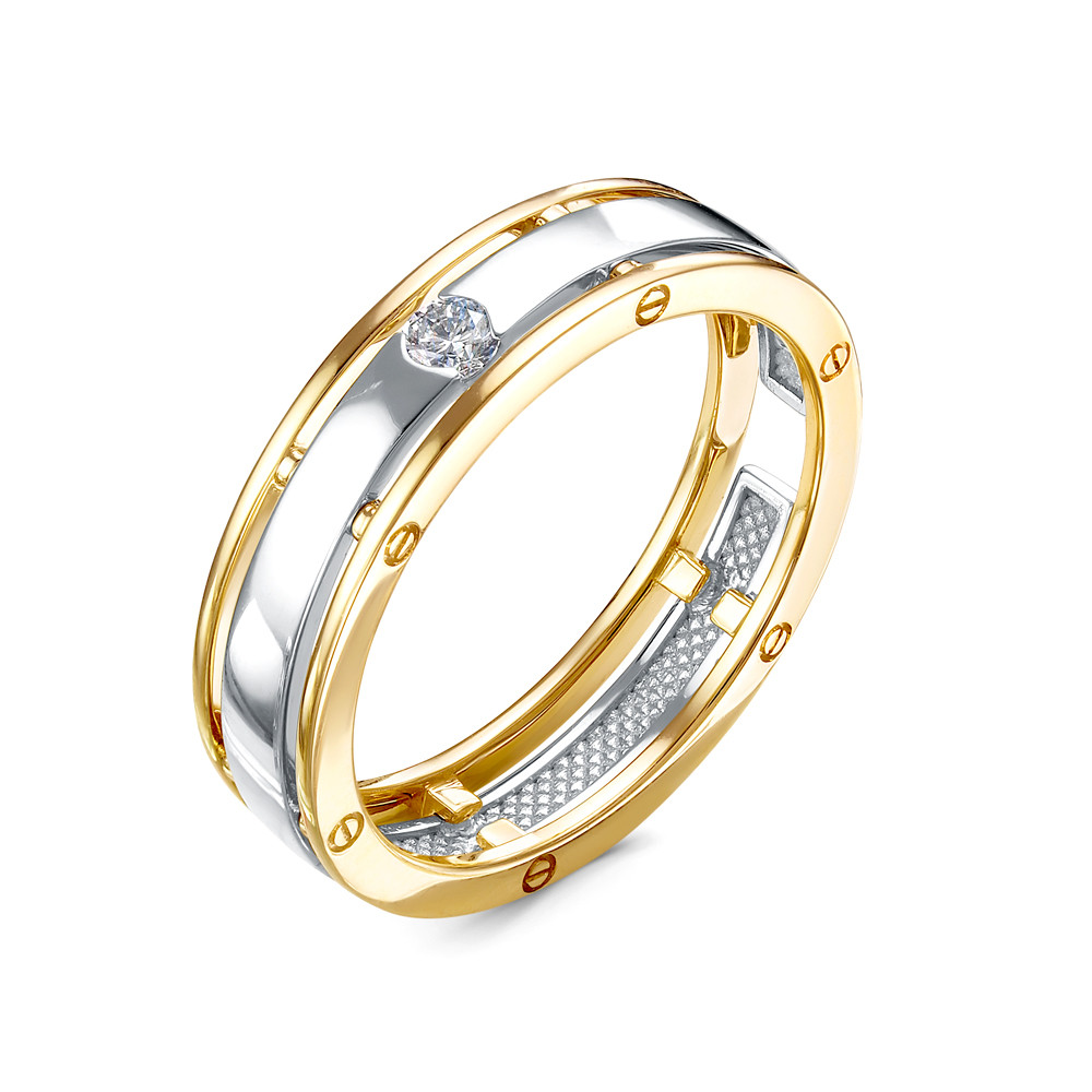 Обручальное кольцо из комбинированного золота с бриллиантом 067103