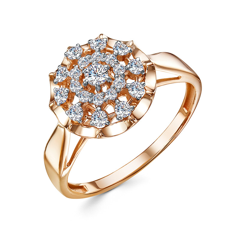 Кольцо из красного золота с фианитами 068036
