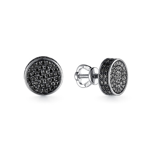 Серьги из белого золота с чёрными бриллиантами 070441