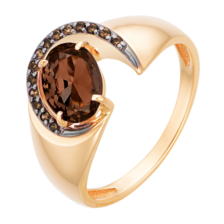Кольцо из красного золота с раух-топазом и фианитами 071379
