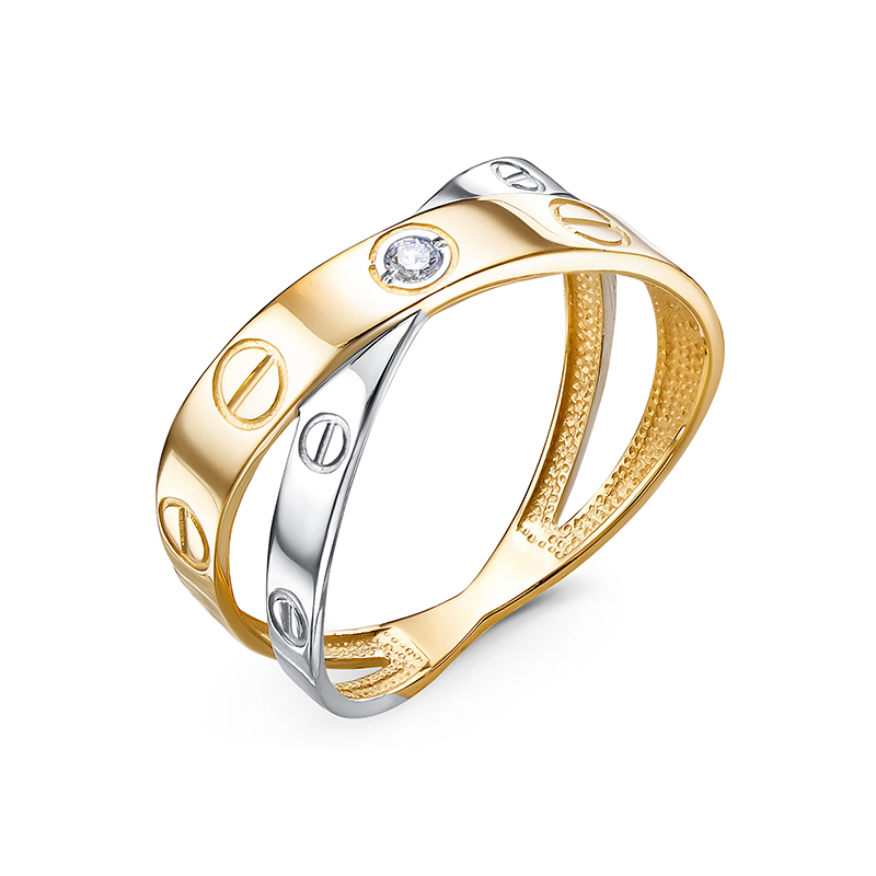 Кольцо из желтого золота с фианитами 074243