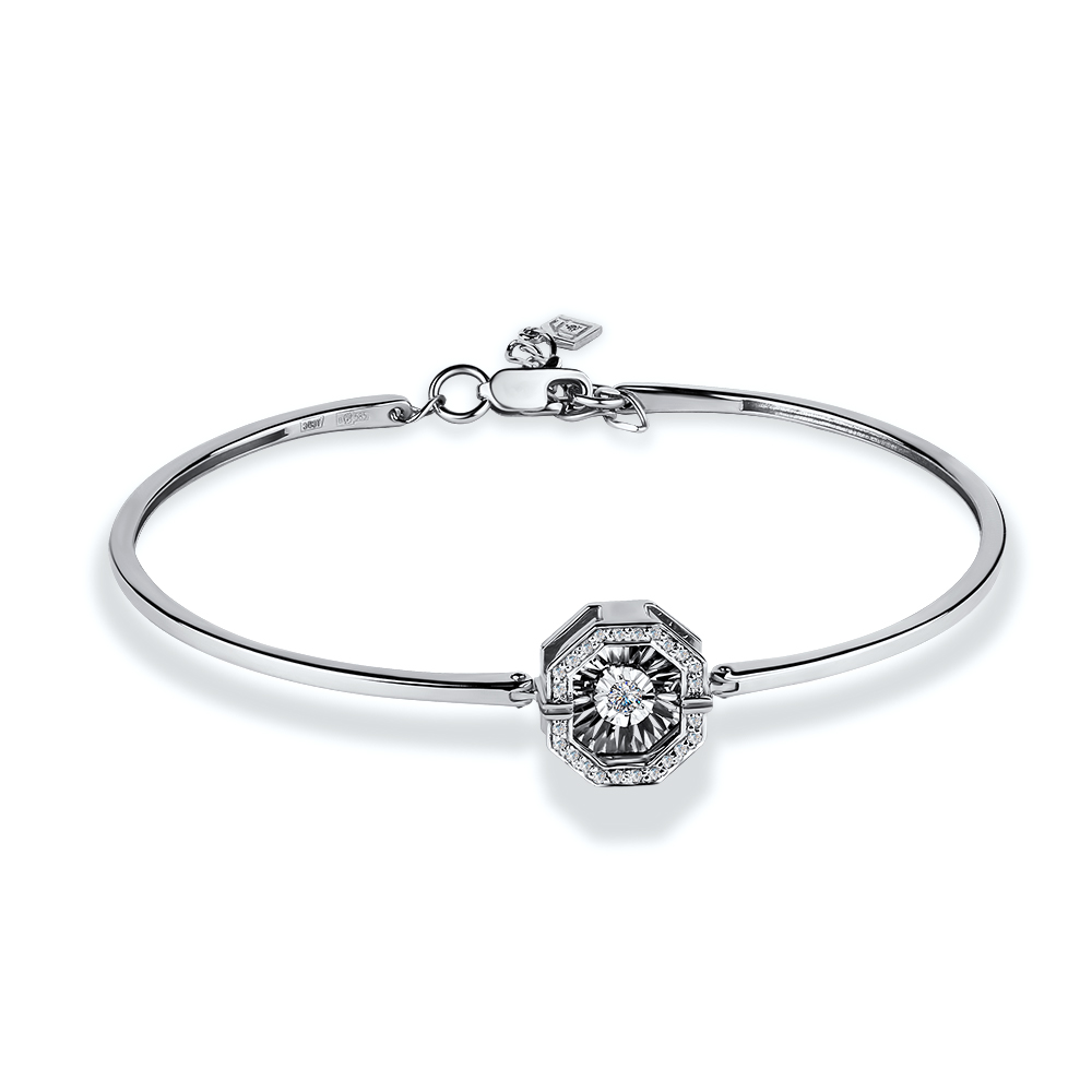 Браслет жёсткий из белого золота с бриллиантами 075105