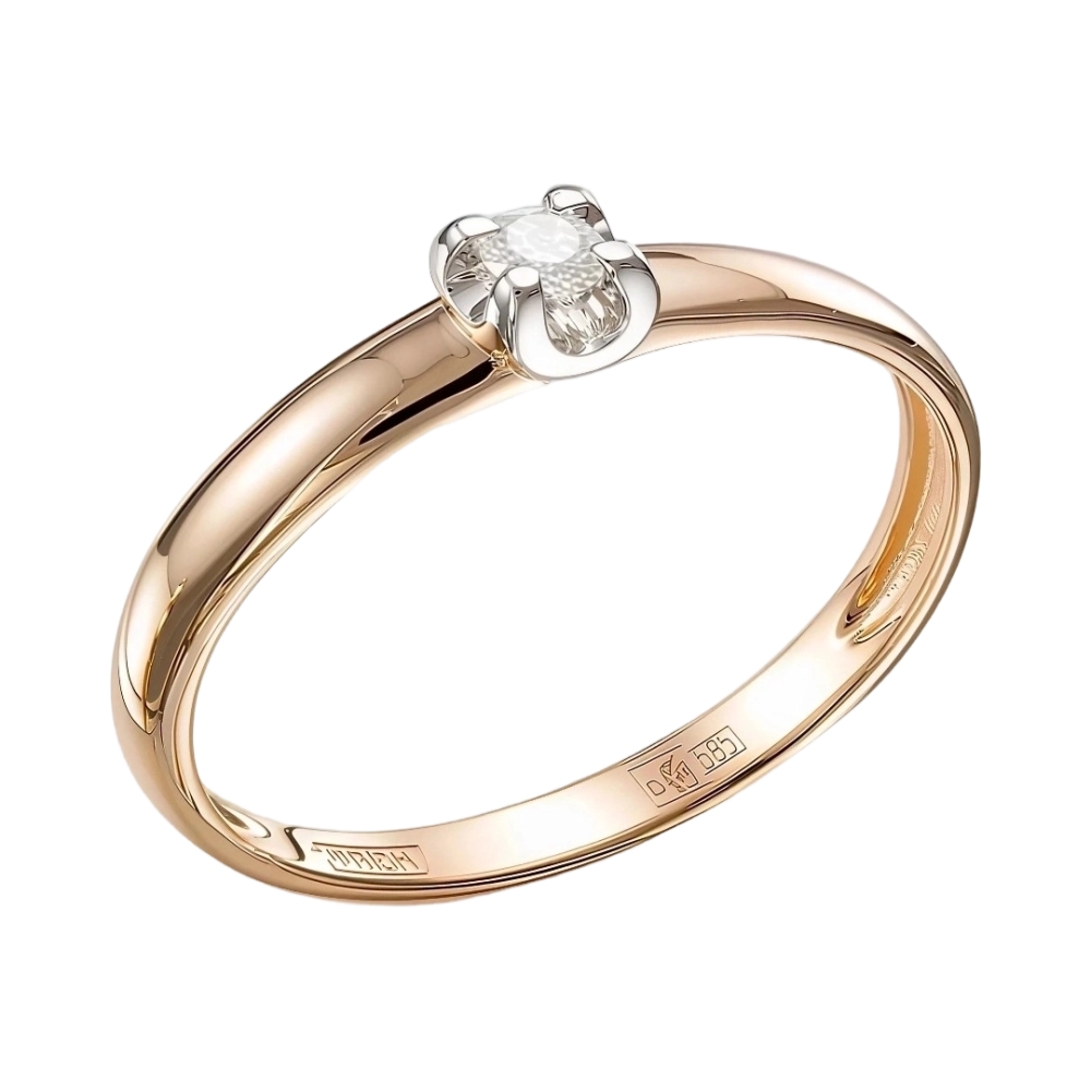 Кольцо помолвочное из красного золота с бриллиантом